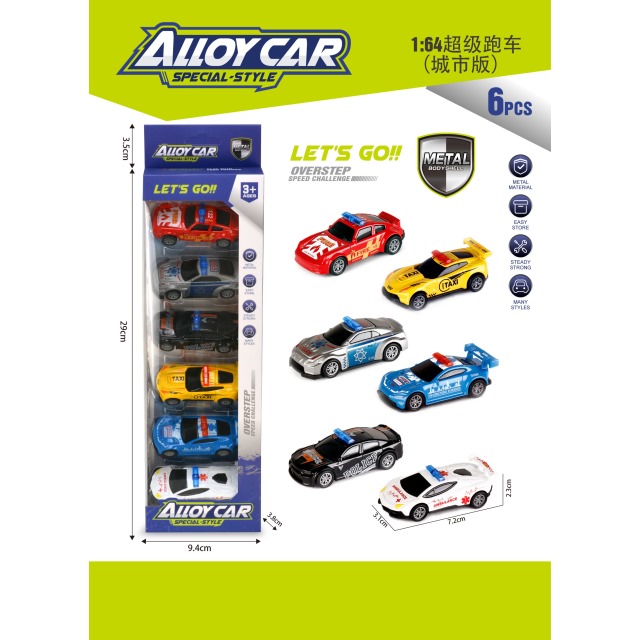 Name:1:64 PULL BACK CAR 6PCS
