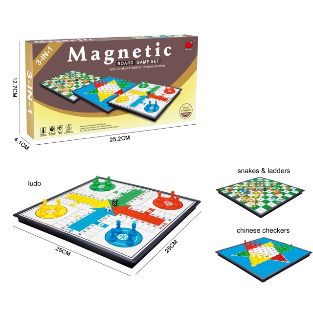 Name:3-IN-1 FOLDING MAGNETIC CHECKERS SNAKE LADDER CHESS DICE CHESS