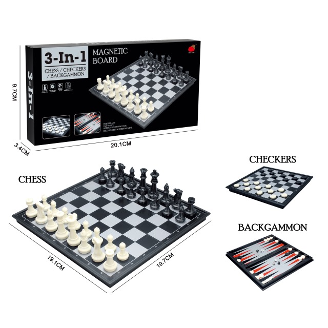 Name:3-IN-1 FOLDING MAGNETIC INTERNATIONAL CHESS CHECKERS BACKGAMI